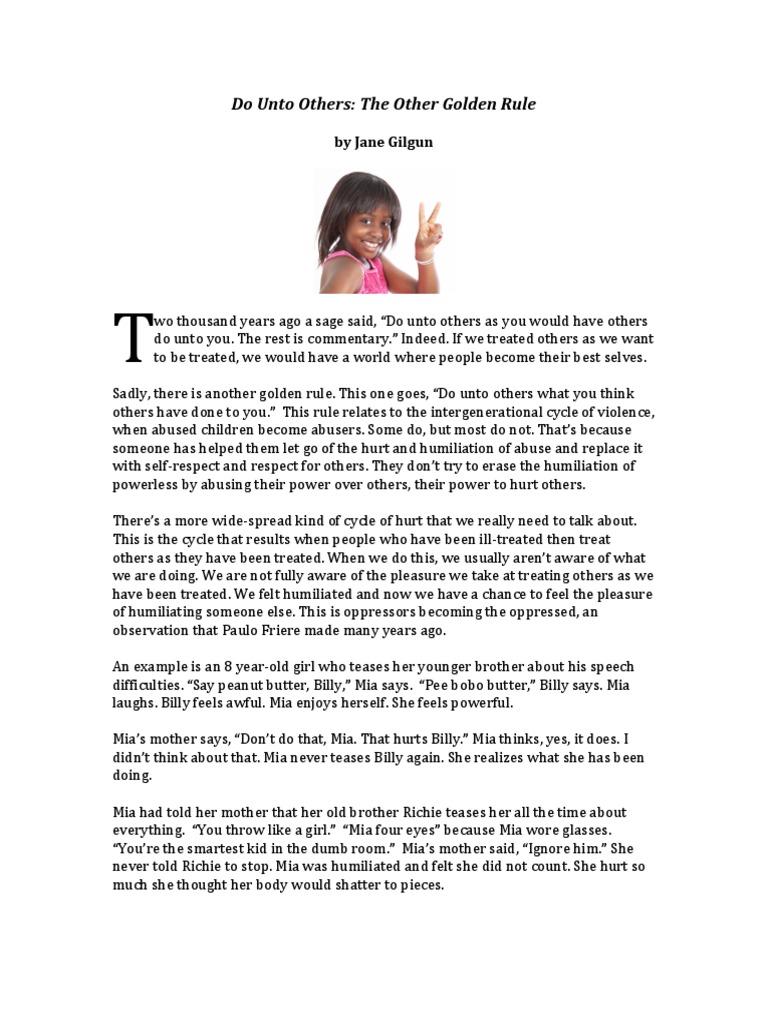 Daniel Esparza-published on 022419. The Golden Rule is the principle of treating others as one wants to be treated. You may want to debate if the statement holds any truth or not but that is not the essence of the argument. Do not do unto others what you do not want others to do unto you. This statement is in the context of a lesson from Jesus about loving our enemies. You dont need Ten Commandments. There are many messages that can be drawn from this rule but there are three main conclusions. The so-called golden rule that is behave toward others as you would have them behave toward you. This is the essence of all that is taught in the law and the prophets.