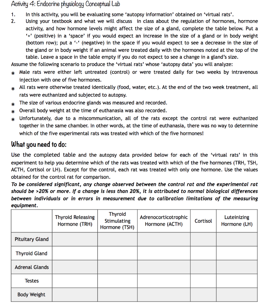 How does the endocrine system help the body maintain homeostasis. Hormones are chemical signals that are synthesized and secreted by endocrine cellsglands. The path-ways of all three hormones can be understood by looking at a visual representation in Fig. These features help readers to retain concepts and terms that. All vertebrates animals with backbones have a well-developed and highly organized endocrine system. Also identify Herring bodies in the pars nervosa and acidophils basophils. Virtual Rat Endocrine Physiology Exercise Objectives At the conclusion of this activity the student will be able to. What are the endocrine hormones. The female reproductive system is more difficult to study than the male reproductive system because it is continuously cycling.