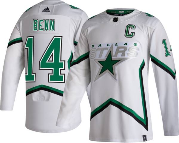 DALLAS STARS ADIDAS REVERSE RETRO JAMIE BENN AUTHENTIC PRO JERSEY. 1415 Sp Game Used Jersey Number Base Jamie Benn 14 Stars. Jamie recorded 7-14-20 in 19 games with the Freezers. DALLAS STARS ADIDAS AUTHENTIC JAMIE BENN HOME JERSEY. Celebrate your favorite player with Jamie Benn t-shirts and hoodies so youre ready for the next game. Jamie Benn Dallas Stars Adidas Authentic Veterans Day Practice Jersey Camo 14999. Get it as soon as Wed Aug 18.